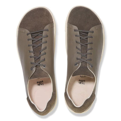 La desenfadada zapatilla deportiva BIRKENSTOCK Bend destaca por su sencillez y se puede combinar con versatilidad. Gracias a una suela intermedia adicional de poliuretano y corcho se consigue una amortiguación óptima. La microfibra transpirable absorbe la humedad de manera óptima. Esta variante es una versión monocroma que juega con distintos materiales para crear un look minimalista. El material superior está compuesto por suave ante en combinación con piel natural.