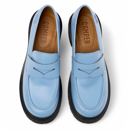 Mocasines azules de piel para mujer con plantillas no extraíbles OrthoLite® Recycled™ y suelas de EVA.